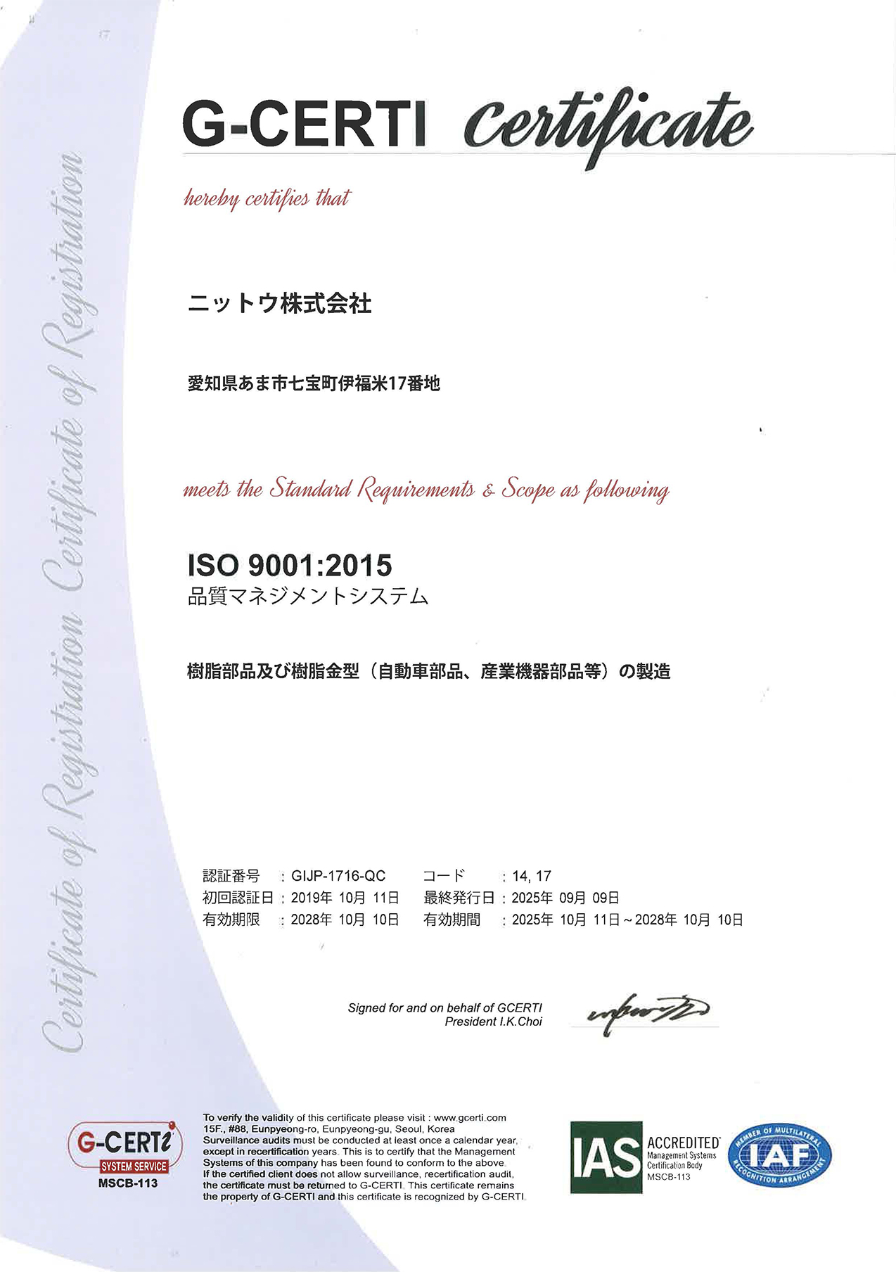 弊社は、2019年10月11日に「ISO 9001:2015」の認証を取得しました。